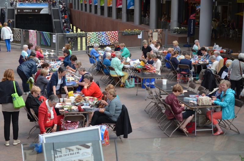 Op zaterdag 21 juni vond de internationale Quilt in Public Day plaats. Overal over heel de wereld wordt op die dag in het publiek gequilt, om onze fantastische hobby meer bekendheid te geven.
